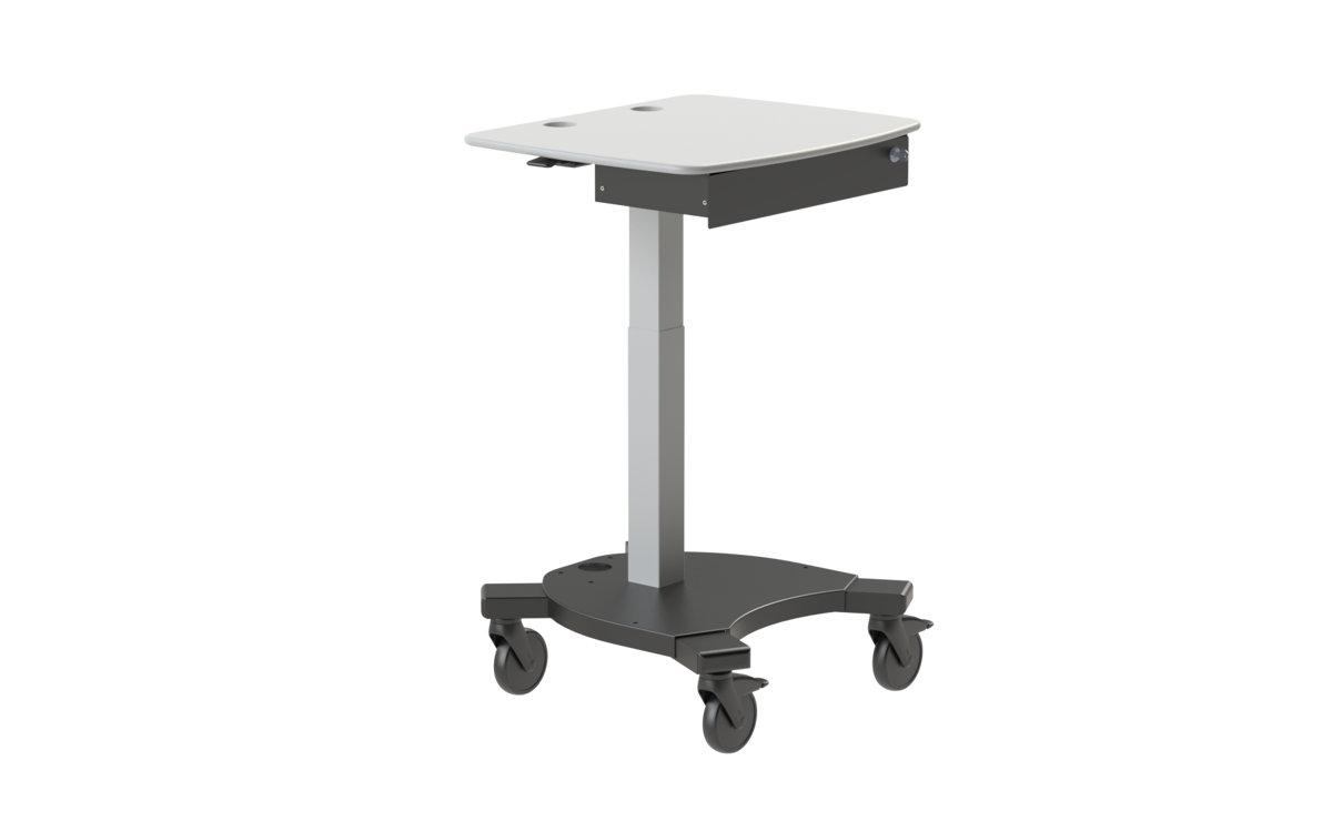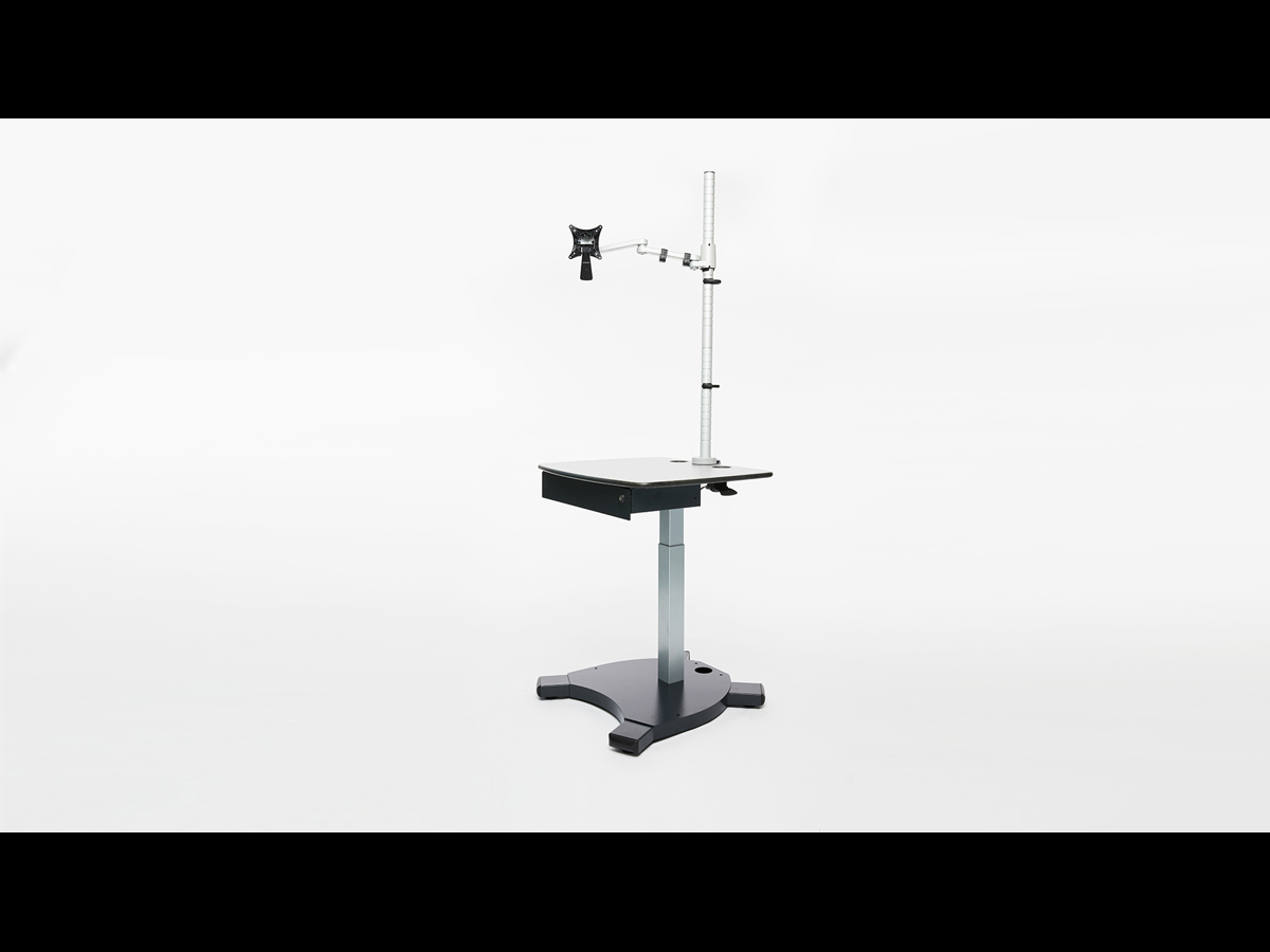 The monitor arm and tabletop are adjustable for the convenience and ergonomic requirements of different users, and with the box being fully independent of the cart, it can be set up with alternative audio-visual equipment for demonstrations.